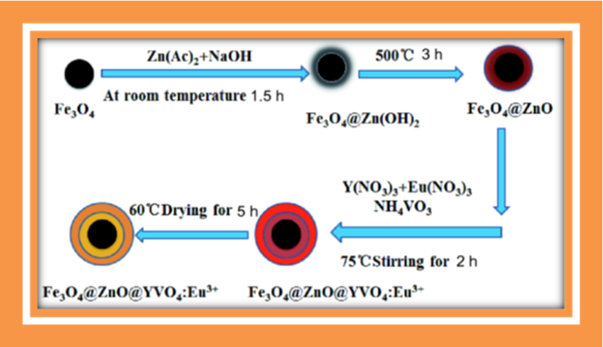 Fe3O4@ZnO@YVO4:Eu3+多功能复合纳米颗粒的形成过程示意图