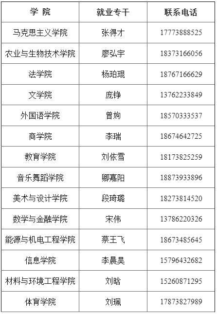 二级学院就业工作人员联系电话