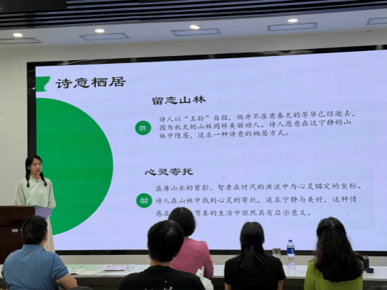 在比赛中,选手们展现了扎实的专业功底和深厚的文化素养。有的选手以杜甫《春望》为例,结合安史之乱的历史背景,深刻阐释了诗人忧国忧民的家国情怀;有的选手选取苏轼《定风波》,通过分析其豪放旷达的语言风格,揭示了词人面对逆境时超然物外的人生态度;还有选手对李清照《声声慢》进行细腻解读,从意象选择、音韵运用等角度,展现了婉约词独特的艺术魅力。选手们不仅采用传统诵读方式,还巧妙运用多媒体技术,通过背景音乐、画面渲染等手段来增强表现力。经过激烈角逐,最终评选出,获得一等奖的有于昊冉、张欣睿、张子炬、郑雯婧;获得二等奖的有陈颖、郭湛然、李姝婷、管天卓、郑艳珍、陈曦;获得三等奖的有刘依倩、王丹、范姣民、陈研、秦思艺、曾熙、刘慧、李子怡。通过赛事,不仅强化了大学生的语言表达能力与人文素养,更培养了他们的家国情怀与文化自信,完美诠释了"以文化人、以诵化情、以典铸魂"的育人理念。