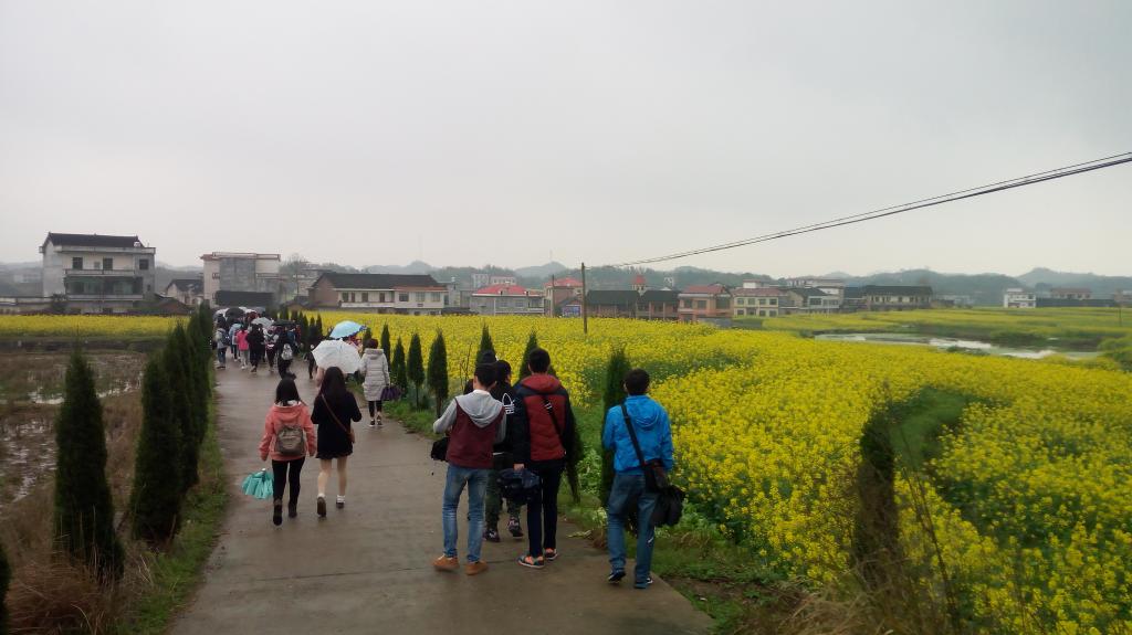 大巴车在乡间的公路上疾行,车子里歌声笑声一片。车窗外不时掠过的大片大片金黄的油菜花田,引起了众人的阵阵欢呼。车子里的每一个人,都被这美丽的田园鼓舞着,完全忘记了春雨绵绵的烦闷,完全消弭了晕车的苦恼。这是beat365英国官网文学院2016级汉语言文学和秘书学专业学生赴双峰写作采风路上发生的快乐的一幕。