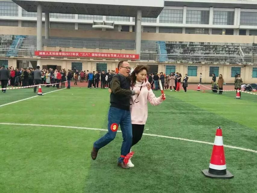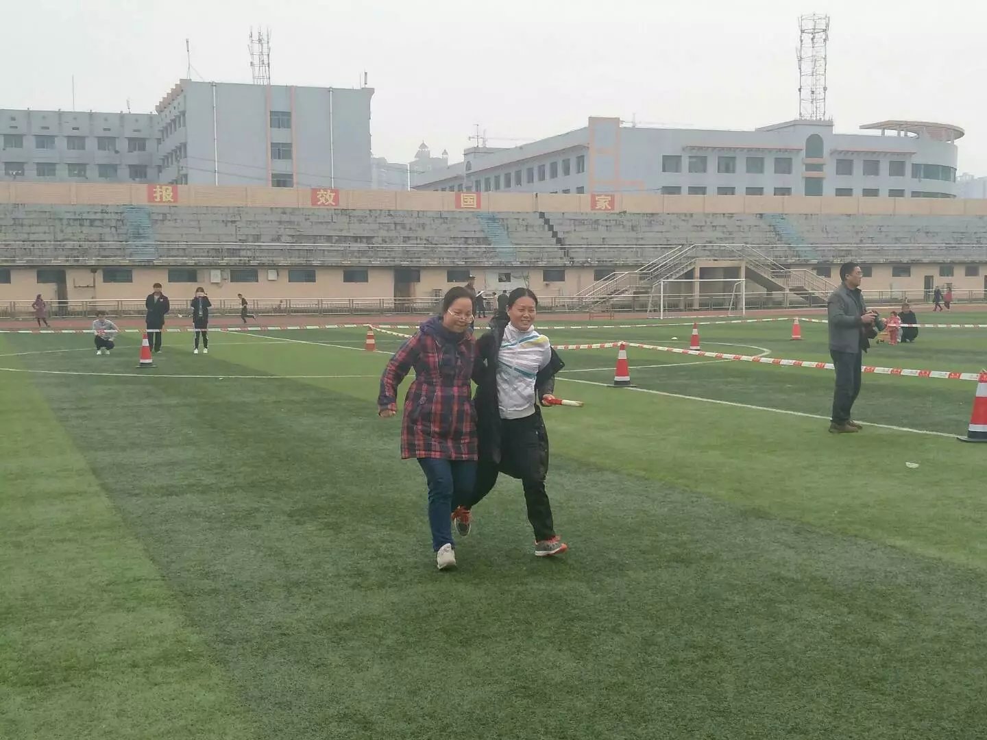 为了迎接"三八"妇女节的到来,3月7日下午,由学校工会举办的两人三足接力赛,在beat365英国官网田径场欢乐进行着。在校所有男教师们陪同所有女教师们共同参与了此次活动。