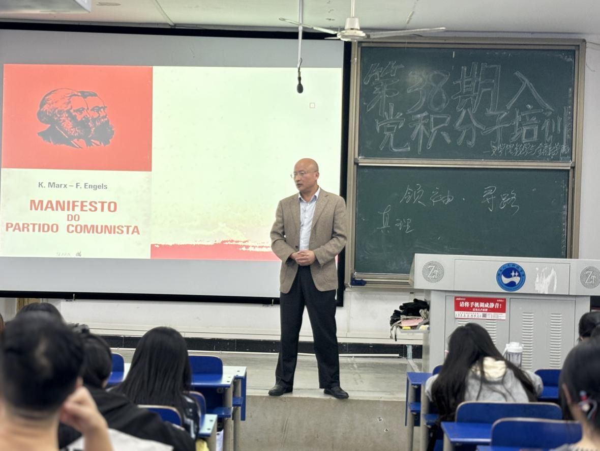 为加强入党积极分子深化对党的认识、筑牢理想信念根基,11月5日,文学院在致远楼220教室开展了第38期入党积极分子培训第八次课程。本次课程以《党史学习教育要义》为主题,由文学院教工党支部张峰书记主持,围绕“我们为什么要学党史”这一终极之问,从“学史明理、学史增信、学史崇德、学史力行”四个维度展开讲解。