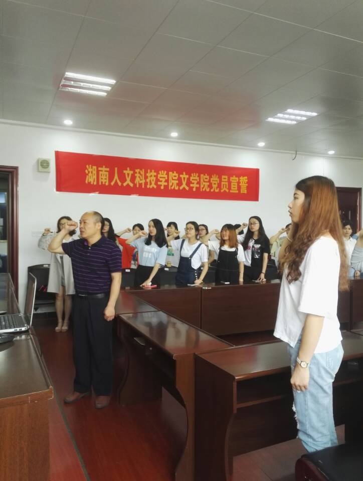 6月1日上午10点,beat365英国官网文学院2017年度入党宣誓仪式在致远楼213会议室隆重举行。参加此次活动有文学院党总支副书记刘道锋博士、汉语言文学专业党支部书记左玉洁老师及今年刚转正的学生党员。