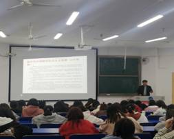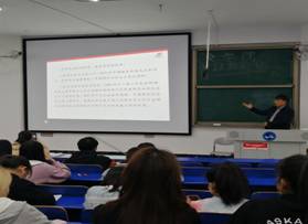 2020年11月19日晚7:30,文学院分党校第28期入党积极分子培训班在致远楼220进行第五次培训,主讲彭辉书记与82名入党积极分子参加。