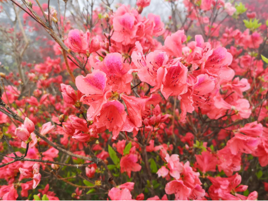 第二站,我们到达了著名的十里杜鹃景观,杜鹃花依次盛开,在山腰上延绵十余里,漫山遍野,如火如荼,蔚为壮观。