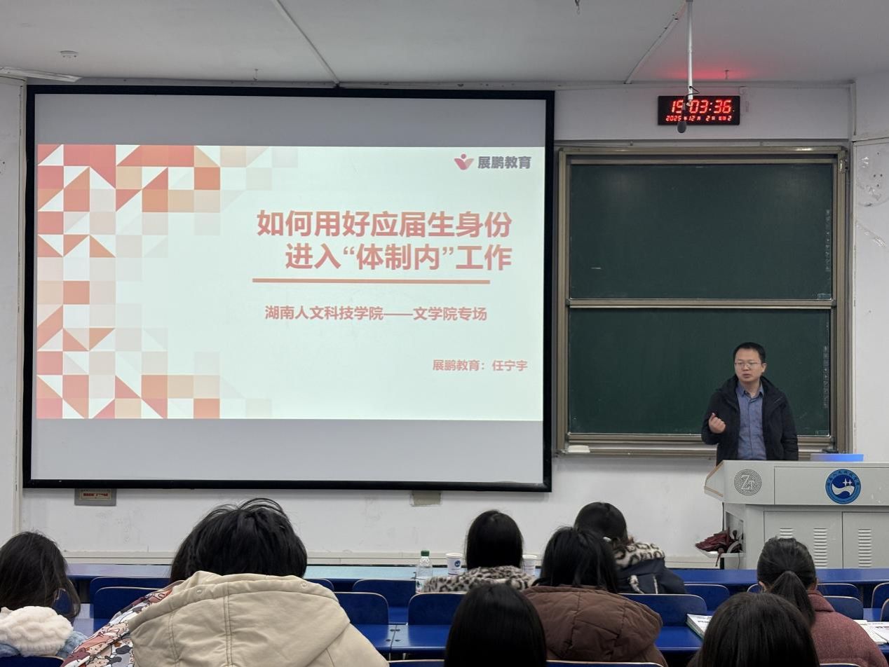 讲座围绕“充分利用应届生身份冲刺体制内岗位”核心主题展开。任宁宇老师结合文学院专业特色,系统解读了应届生身份在考公考编中的竞争优势,梳理了适配的岗位类型与报考政策,并针对备考规划、复习方法等关键问题进行细致讲解,为同学们提供了兼具针对性与实操性的指导。讲座过程中,同学们积极互动交流,主动请教相关疑问,现场氛围热烈活跃。
