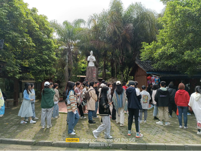 30日上午,师生从阳朔回到桂林,参观刘三姐大观园。山川锦绣孕壮歌,大地飞歌颂歌仙。刘三姐代表的劳动与爱情、美好与善良,值得永久传唱。刘三姐大观园是歌仙刘三姐的纪念园。“三姐”已去,山歌长流山水间。