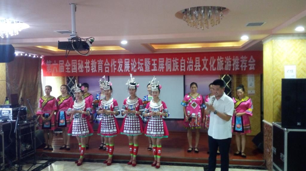 为了深入推进秘书专业建设,助推秘书学专业教学研究与改革,提高秘书学专业人才培养质量,使秘书学专业能更好地为地方经济社会的发展服务,由商务部中国对外贸易经济合作企业协会全国外经贸从业人员考试中心、中国职业技术教育学会国际商务教育委员会主办的第六届秘书教育合作发展论坛暨2017年学术年会7月29—30日在贵州玉屏侗族自治县隆重举行。商务部中国对外贸易经济合作企业协会副会长、全国外经贸从业人员考试中心主任郑樑、玉屏侗族自治县人民政府副县长姚芬、玉屏侗族自治县相关领导、来自全国各院校秘书专业的负责人和骨干教师60多人参加了此次盛会。