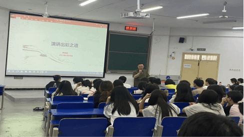 简单的启动仪式过后,由文学院尹钟宏书记讲授演讲的技巧。当今社会,竞争激烈,学习演讲技巧可以提高个人的自信心和解决问题的能力、培养批判性思维与沟通技巧等,为提升个人竞争力以适应就业需要。尹书记以演讲的五个关键词开启本次讲座,即逻辑、结构、内容、情感和仪表,并就这五个方面展开论述。课上,尹书记以实际的演讲稿为例,分析演讲稿的行文逻辑、整体结构、以及内容的撰写,并亲自为同学们示范如何融入感情地进行演讲。末尾,尹书记还提醒同学们注意演讲时的仪表与姿态。尹书记课堂教授的内容十分实用,启迪了同学们提高媒体人的表达能力的思考与努力方向。