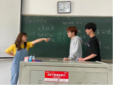 本次集训课主要通过团队自我介绍的形式展开,集训课上,李亚珍老师为同学们讲解了自我介绍的要求和流程,同学们需在40分钟的时间内组建好小组,通过团队合作、共同协商确定小组的组名、介绍方式,要新颖、有创意。在同学们的热烈讨论后,介绍正式开始,无论是默契的“六神”还是紧跟潮流的“创造505”,在语言和动作的交织、音乐和掌声的碰撞中,同学们用自身的演绎方式将自我介绍变得灵活有趣,赢得了一阵阵的欢笑声和赞赏声。