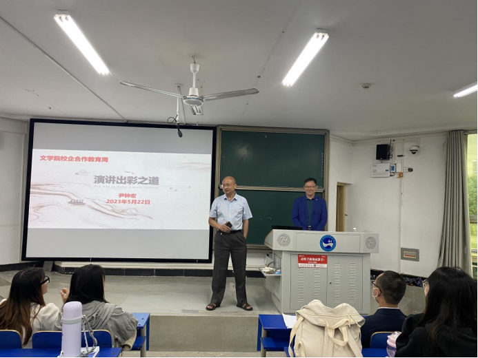 2023年5月22日上午10点,文学院秘书学专业2021级、2022级4个班184名学生在尹钟宏书记、张峰老师的带领下汇聚一堂,开展演讲讲座活动。由此,2023年度文学院秘书学专业校企合作教育在致远楼301教室拉开了序幕。