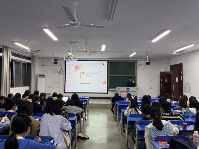 2023年5月23日晚上7点半,文学院邀请娄底市娄星区委办副主任、档案局长(兼)邹雄枫为秘书学专业学生带来“练好内功,提升素质,脚踏实地,仰望星空”主题讲座。本次讲座在致远楼308教室进行,由文学院秘书学专业负责人张峰副教授主持,秘书专业2021级、2022级全体学生听取了本次讲座。