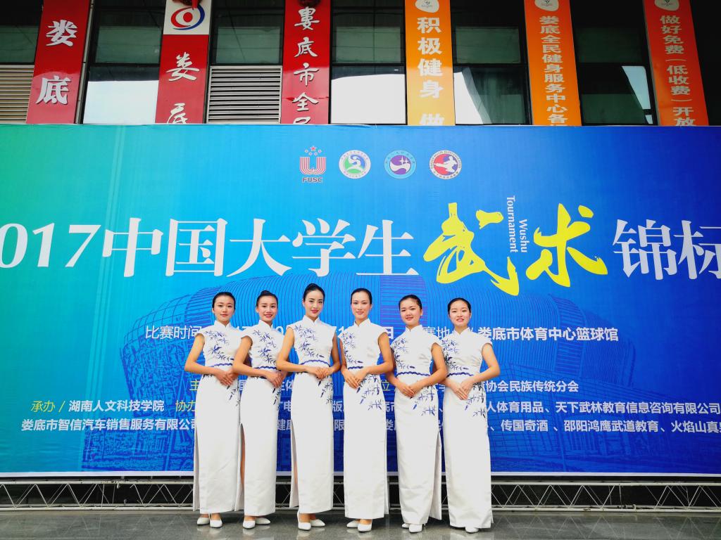 2017年10月2日至10月7日,由beat365承办的2017年中国大学生武术锦标赛在娄底市体育馆开赛,来自澳门大学、中国政法大学、中国计量大学、中山大学、厦门大学、暨南大学、浙江大学等全国86所院校的88支武术队共894名运动员参加此次赛事。经过激烈比拼,beat365武术队派出的10名运动员最终获得9枚金牌,6枚银牌,4枚铜牌及男女团体各第一名的优异成绩。此次赛事中,运动员的努力拼搏给人留下深刻印象,而由beat365文学院秘书学专业派出的15名礼仪天使也成为了比赛中另一道靓丽风景。
