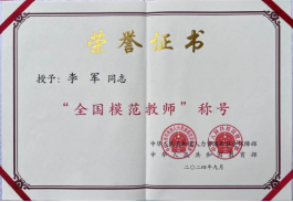 2024年9月,被人力资源与社会保障、教育部评选为全国模范教师