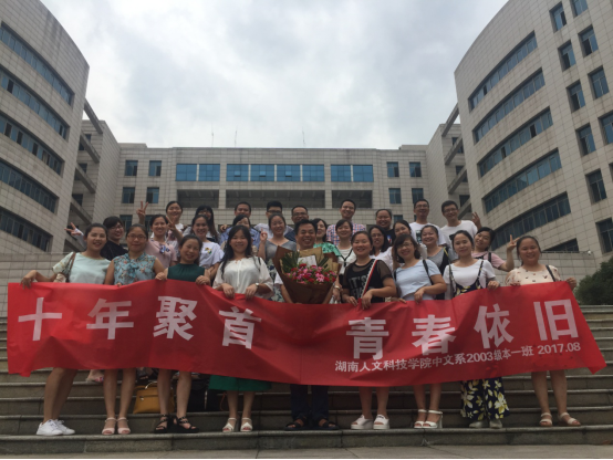 有人说人生是场旅途,而旅途最大的意义不是目的地,而是相伴在你身边的人。感谢你们在10年前陪在彼此身边,走过匆匆的那4年时光,走过那段青葱岁月。感谢你们当年的真心相对,感谢你们今天的真情赴约。愿所有同学在今后的岁月里有人相伴,有爱相随,有回忆可追。在离别前互道珍重,珍重!珍重! 10年后,待我们双鬓稍白,步伐稍重,我们依然怀着炙热的心在此相聚。