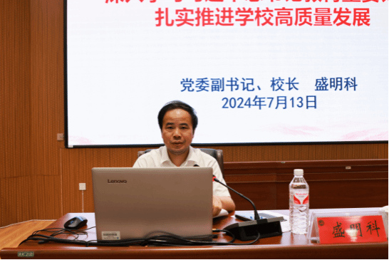 党委副书记、校长盛明科以“深入学习习近平总书记关于教育的重要论述 扎实推进学校高质量发展”为主题,带领大家深入学习了习近平总书记教育论述的战略视野、内容体系和重大意义,并从申硕的总体形势和新一轮“双一流”建设情况着眼,立足学校校情校况,指导大家凝心聚力、强化改革、勇于突破、开拓创新。他要求大家深入学习习近平总书记关于教育的重要论述,将理论转化为推动学校高质量发展的不竭动力。
