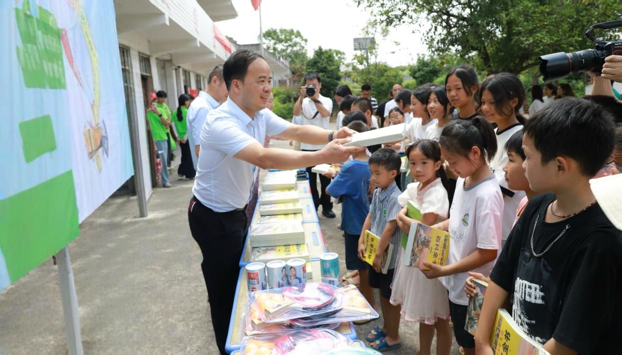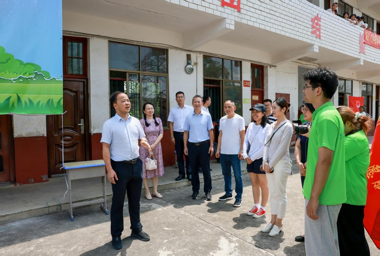 调研期间,盛明科一行还前往新大桥村小学,慰问了学校在此开展暑期社会实践活动的“彩虹计划”志愿服务队成员,并向支教学校和孩子们捐赠了体育器材和书籍等学习用品。