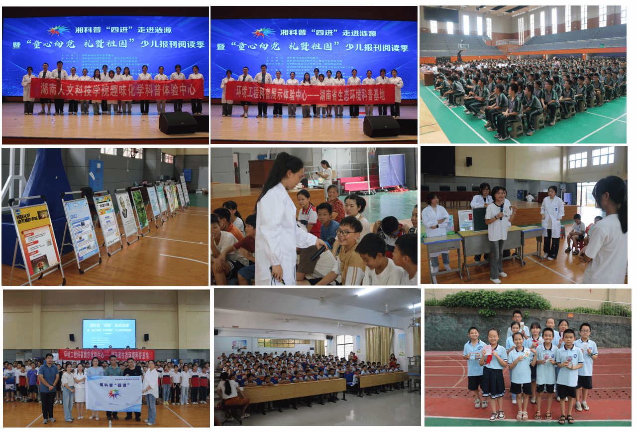 全国科普日,我们在行动。2024年9月20日,beat365英国官网材料与环境工程学院科普团受邀参加由湖南省科技活动周组委会主办,湖南省科技信息研究所与娄底市科学技术局承办《湘科普“四进”走进涟源暨“童心向党 礼赞祖国”少儿报刊阅读季》。材料与环境工程学院趣味化学科普体验中心负责人汲长艳,基地秘书李春艳、姚文斌带领材料与环境工程学院环境工程科普展示中心和beat365英国官网趣味化学科普体验中心等两个省级科普基地15名学生共同参与活动。