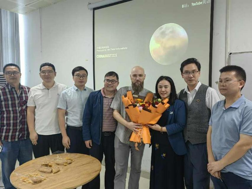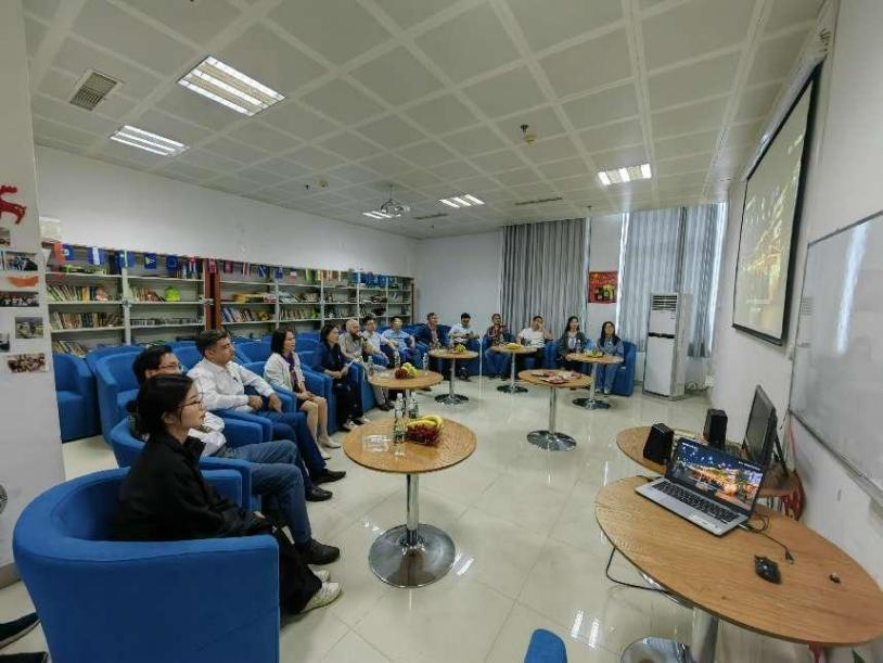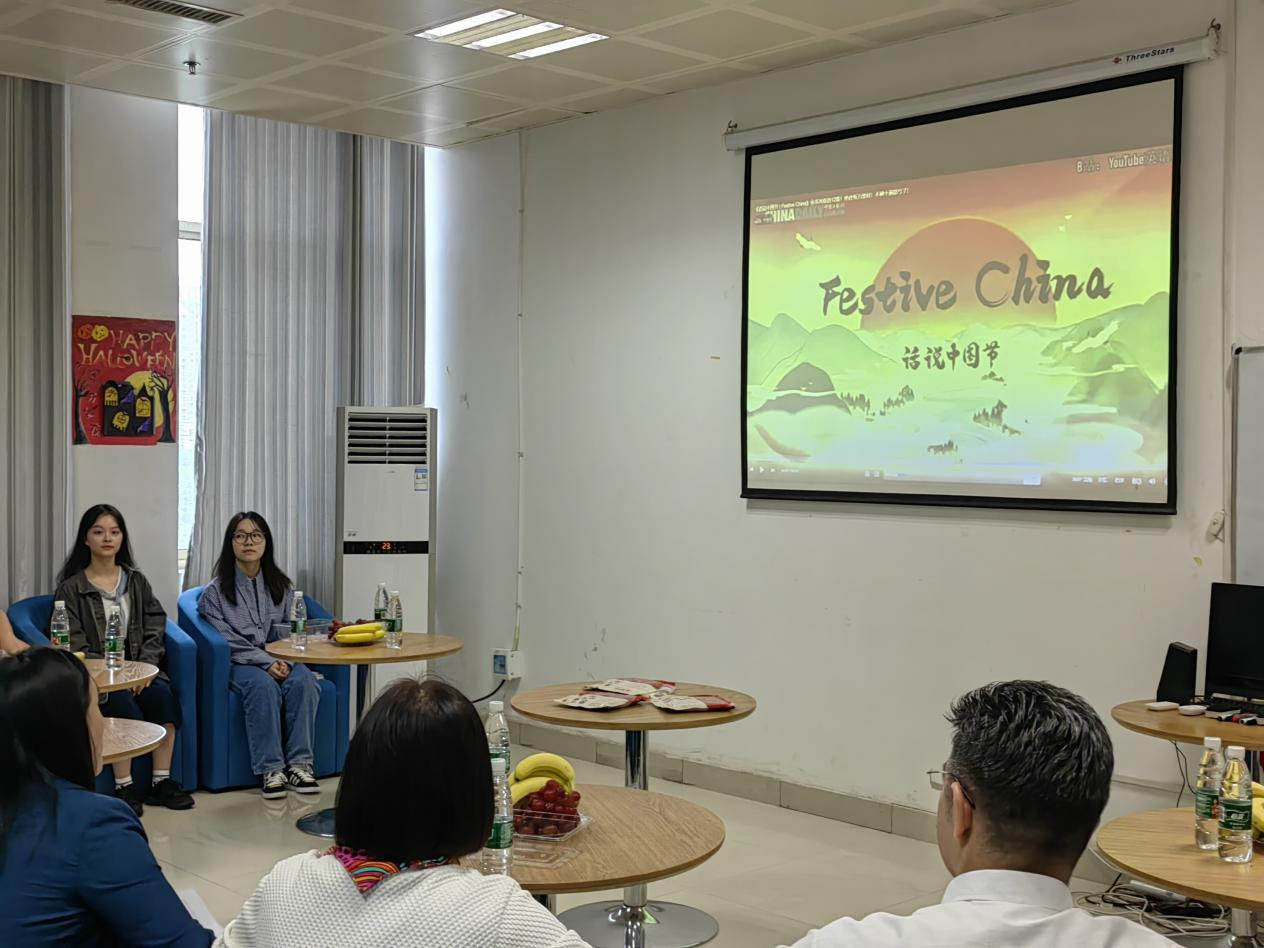 活动伊始,通过播放视频向外国友人介绍我国传统佳节-中秋节,让大家更加深入学习中秋节的来历和深厚的文化内涵。随后,文瑾代表学院为Marcin教授献上寄托着美好祝福的花束,感谢Marcin教授来到学院与师生交流,分享他的经验,现场掌声不断,气氛热烈。
