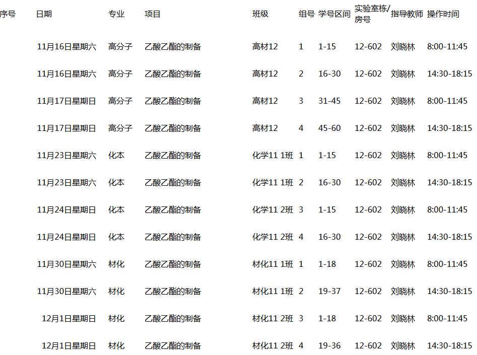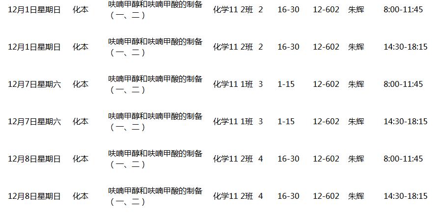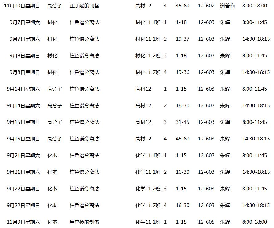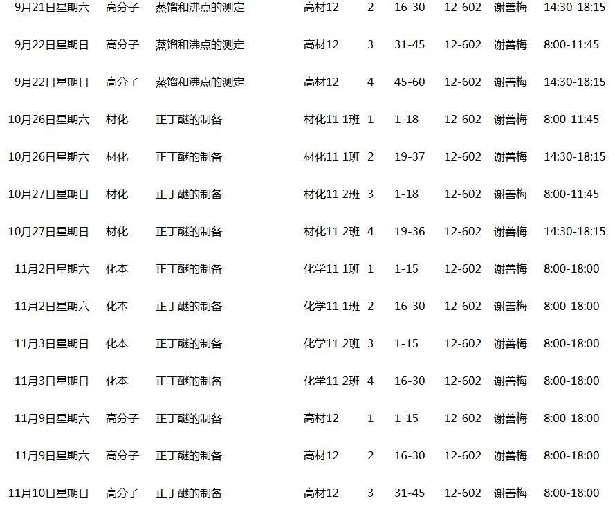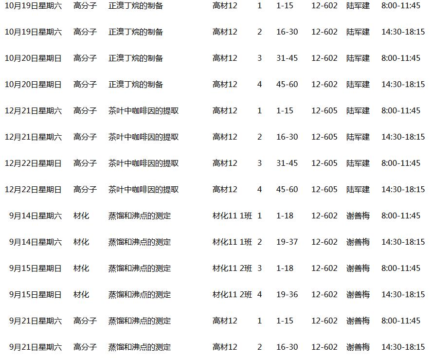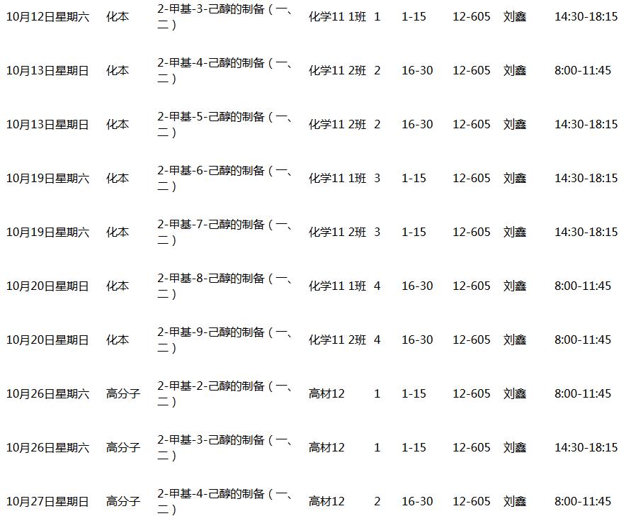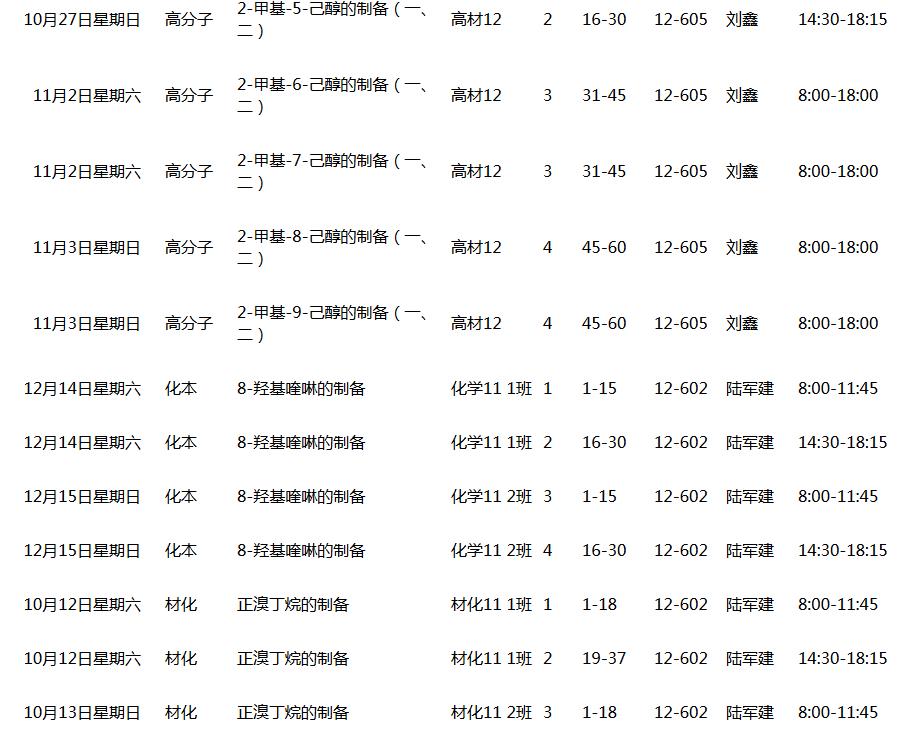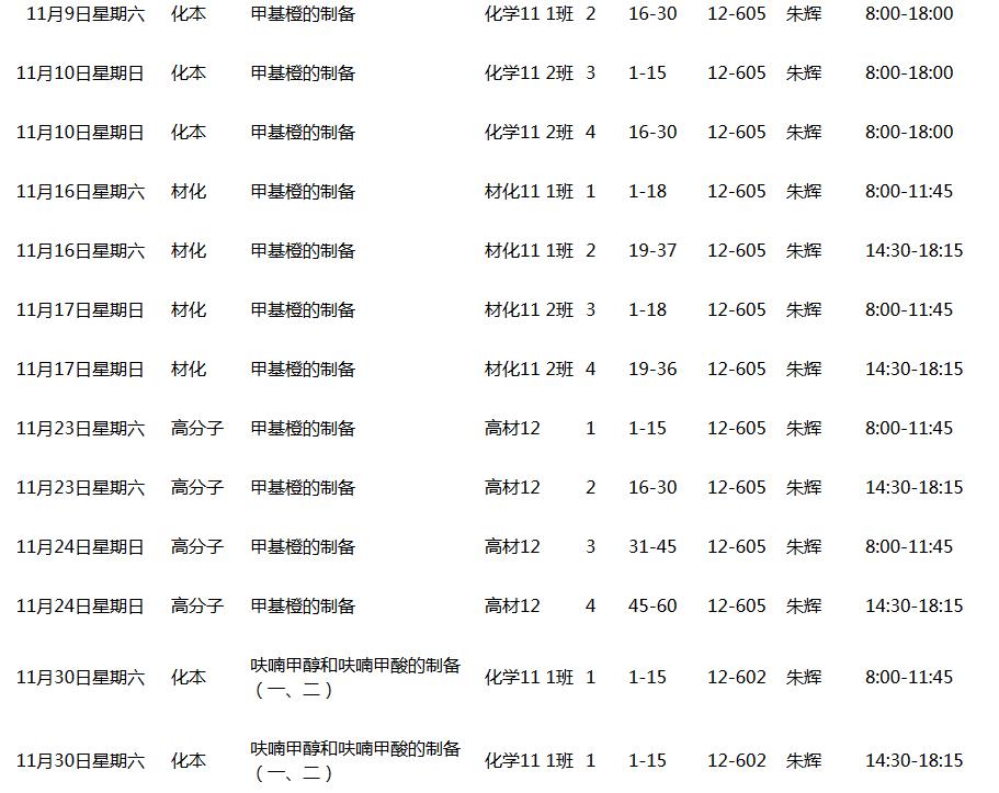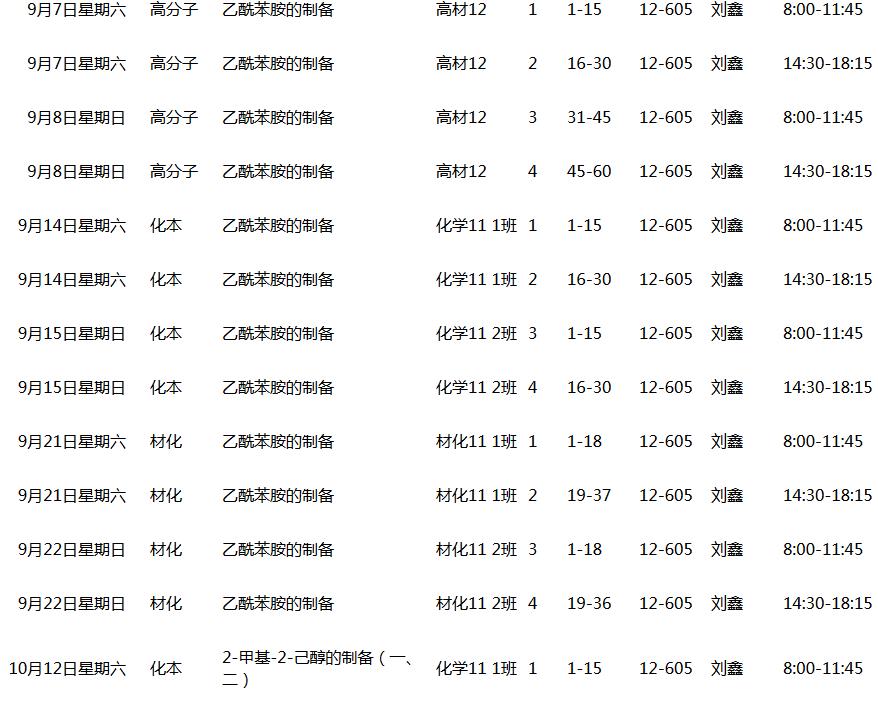 2013~2014(1)学期有机化学实验课表