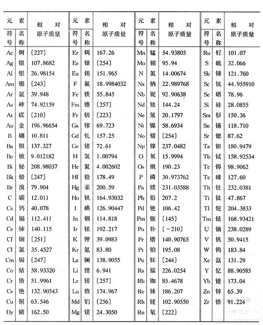 附录1 相对原子质量表