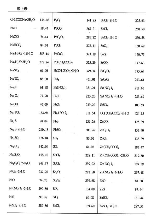 附录2 常用化合物的相对分子质量表