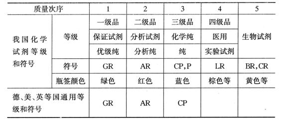附录3 化学试剂等级对照表