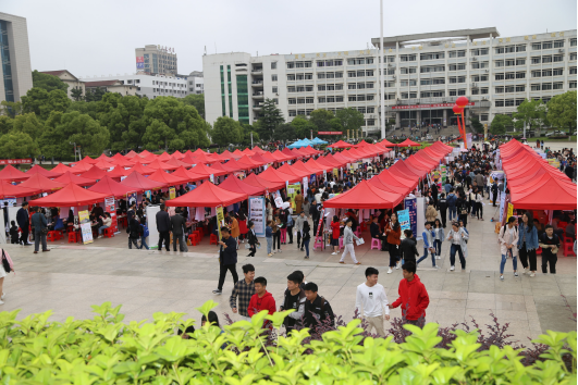 4月24日,湘中地区2018届高校毕业生供需见面会暨beat365英国官网2018届毕业生、2019届实习生春季双选会在beat365海园广场隆重举行。学校2018届毕业生、2019届学生及娄底其他高校毕业生,约4000余人参加了本次招聘会。学校党委书记郭军、校长刘和云、副校长石潇纯等校领导到招聘会现场了解用人单位招聘及学生应聘情况。各二级学院党总支书记、副书记、就业专干自始至终在招聘现场,引导帮扶学生寻找合适的就业实习岗位。