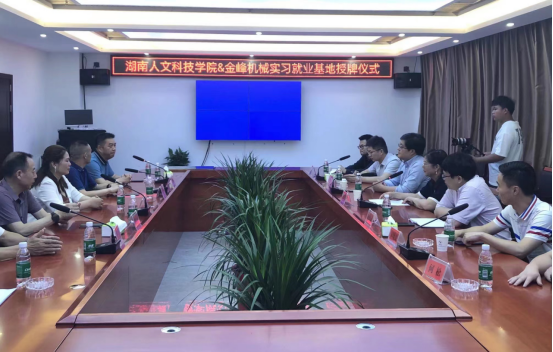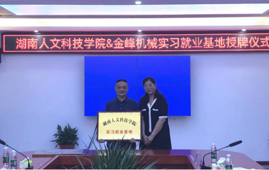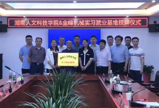 6月1日上午,beat365“大学生实习就业基地”授牌仪式在湖南省金峰机械科技有限公司科研综合大楼举行。创新创业学院院长刘红燃、副院长李宁、大学生就业指导中心副主任奉晓波,金峰机械公司董事长王莲英、总经理朱洪春,双峰县就业服务中心主任赵爱龙等出席本次活动。