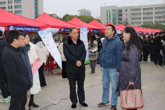 招聘会现场人头攒动,同学们早早就来到了招聘会现场,带着自己精心准备的简历,向用人单位介绍自己。现场气氛热烈,看到此景,广州黄埔区(开发区)劳动就业服务管理中心主任綦宗彬表示,今年是首次组团来学校招聘,发现学校和学生对此次招聘活动十分重视,也发现学校的专业设置、毕业生培养定位与黄埔区企业需求较为吻合,他表示,后续将会针对学校举办专场招聘会,点对点有针对性开展招聘,期待开展深入合作,实现三赢。