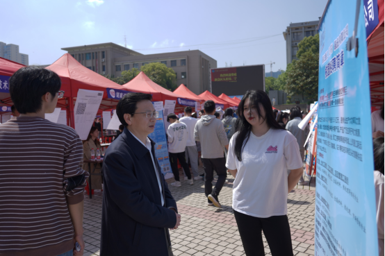 校党委书记刘铁铭等校领导深入会场,详细了解用人单位发展状况、岗位需求等情况,听取用人单位对学校人才培养的建议,询问毕业生求职准备及就业意向。刘铁铭鼓励毕业生把握机会,积极就业,早日找到自己心仪的工作,并要求相关职能部门抓住就业黄金期,继续推进访企拓岗,积极搭建就业平台,用心用情做好就业指导服务。