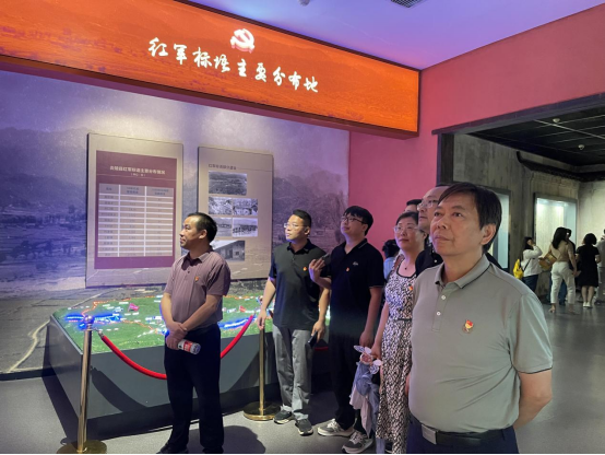 红军标语博物馆是中国第一家红军标语专题博物馆。在红军标语博物馆,全体党员依次参观了博物馆的全部展厅,透过一条条标语、一首首地方歌谣,仿佛置身于90多年前的革命根据地,看到了工农红军与群众互动交流,军民一家亲的红火场面;感受到了工农红军和根据地群众齐心协力、革命到底的坚定信念。