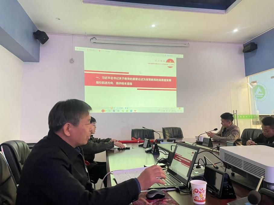 11月28日下午3点,学校原党委书记郭军在匠成楼105会议室为创新创业学院全体党员上题为《深入学习贯彻习近平新时代中国特色社会主义思想和党的二十大精神,推进高等教育高质量发展》的专题党课。