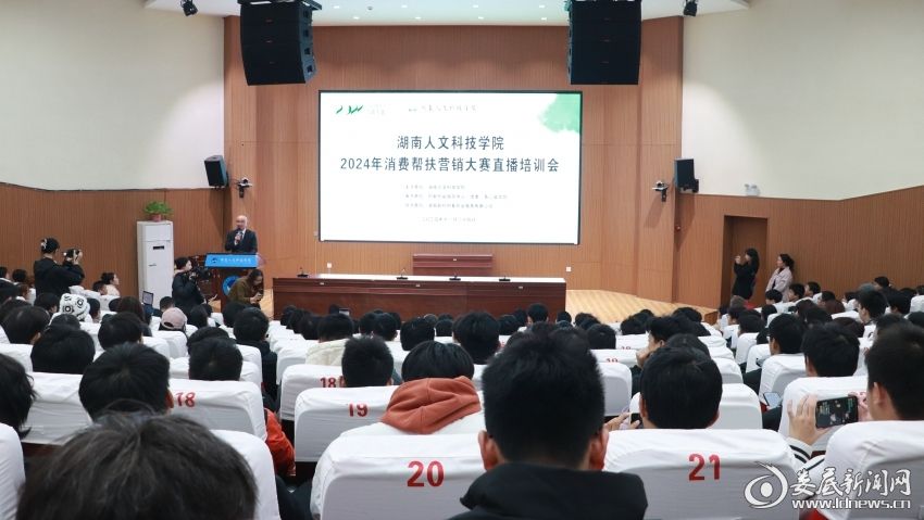 为提升参赛学生的营销技能,助力消费帮扶事业,11月24日晚,beat365英国官网成功举办了2024年消费帮扶营销大赛第一场直播培训会,学校创新创业指导中心负责人、各二级学院指导老师和学生代表近400人齐聚匠成楼报告厅,共同参加此次活动。