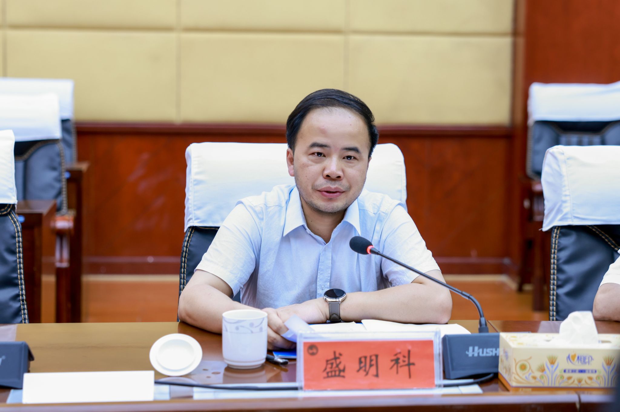 6月13日下午,湖南财政经济学院党委书记易棉阳一行来校交流本科教育教学审核评估工作。座谈会在学校图书馆第一会议室举行,湖南财政经济学院党委委员、副校长潘爱民,我校党委副书记、校长盛明科,党委副书记朱强出席会议。