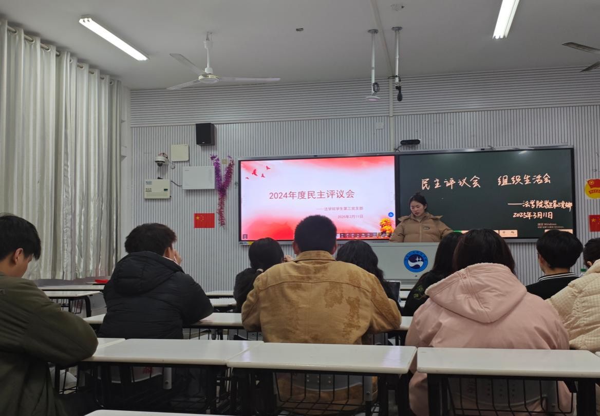 3月11日下午,法学院学生各党支部召开了2024年度组织生活会,并开展民主评议党员工作。