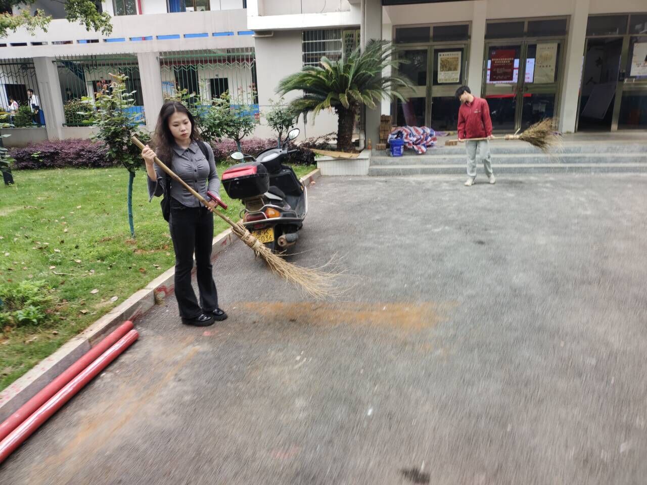 茅檐长扫净无苔,花木成畦手自栽。上午,和煦的阳光洒向校园,同学们一个个手持清洁工具,来到指定区域,开始了紧张而有序的清扫工作。大家齐心协力,清扫道路、花坛等各个角落,秉承着不放过一片纸屑,一个烟蒂的精神,在班团支书的带领和同学们的共同努力下,若谷楼周围的环境焕然一新。
