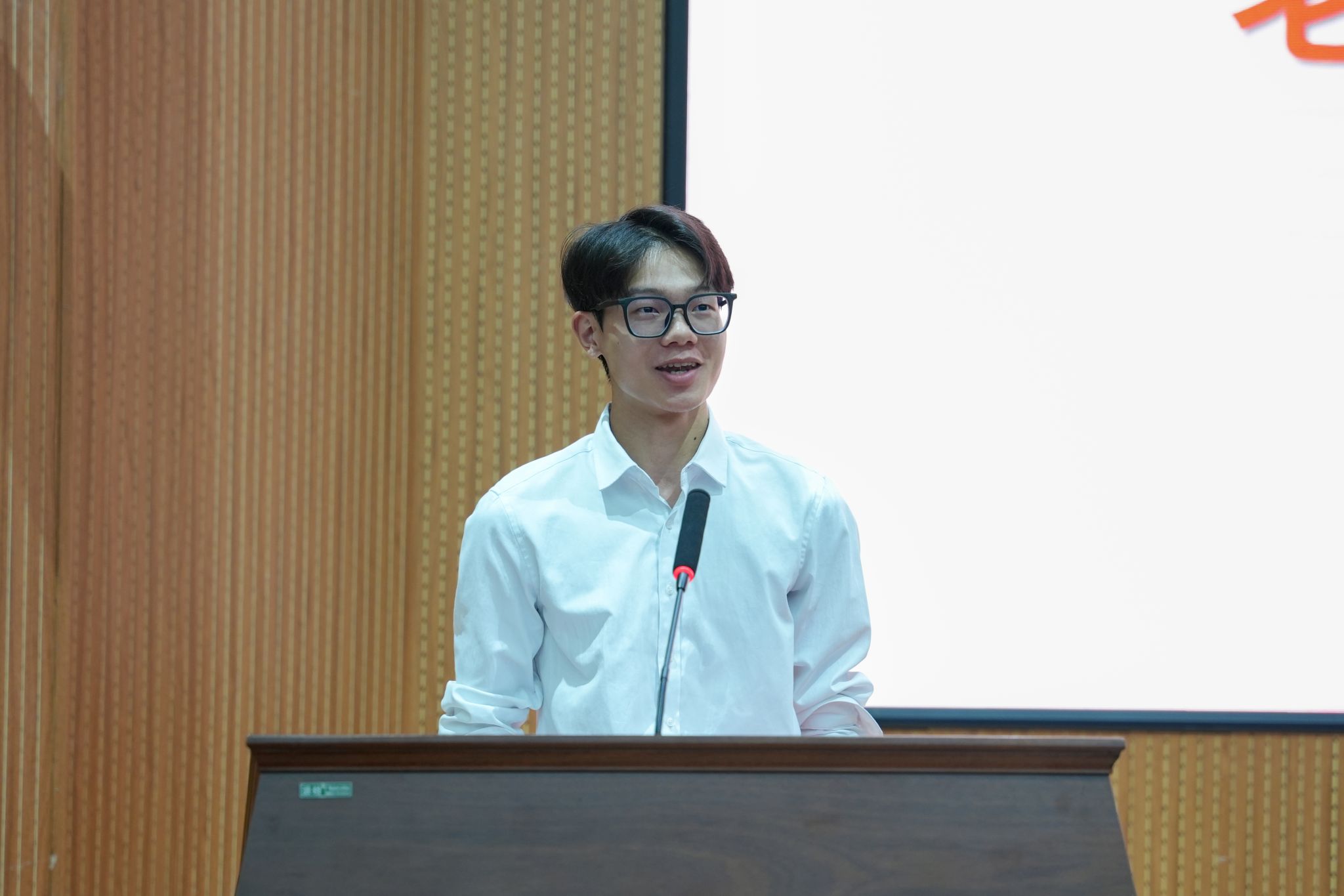 老生代表蒋学明和新生代表成之理分别发言。蒋学明分享了自己的求学道路,鼓励新生勇于探索未知,不断挑战自我。成之理代表全体新生表达了对大学生活的无限憧憬,表示将以饱满的热情迎接新的挑战与机遇。