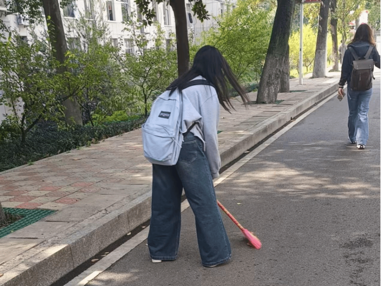 为了营造优美、整洁的校园环境,2024年11月12日,24级法学三班的同学们积极响应,在学生宿舍8栋门口的道路上开展了“守望花田”活动。