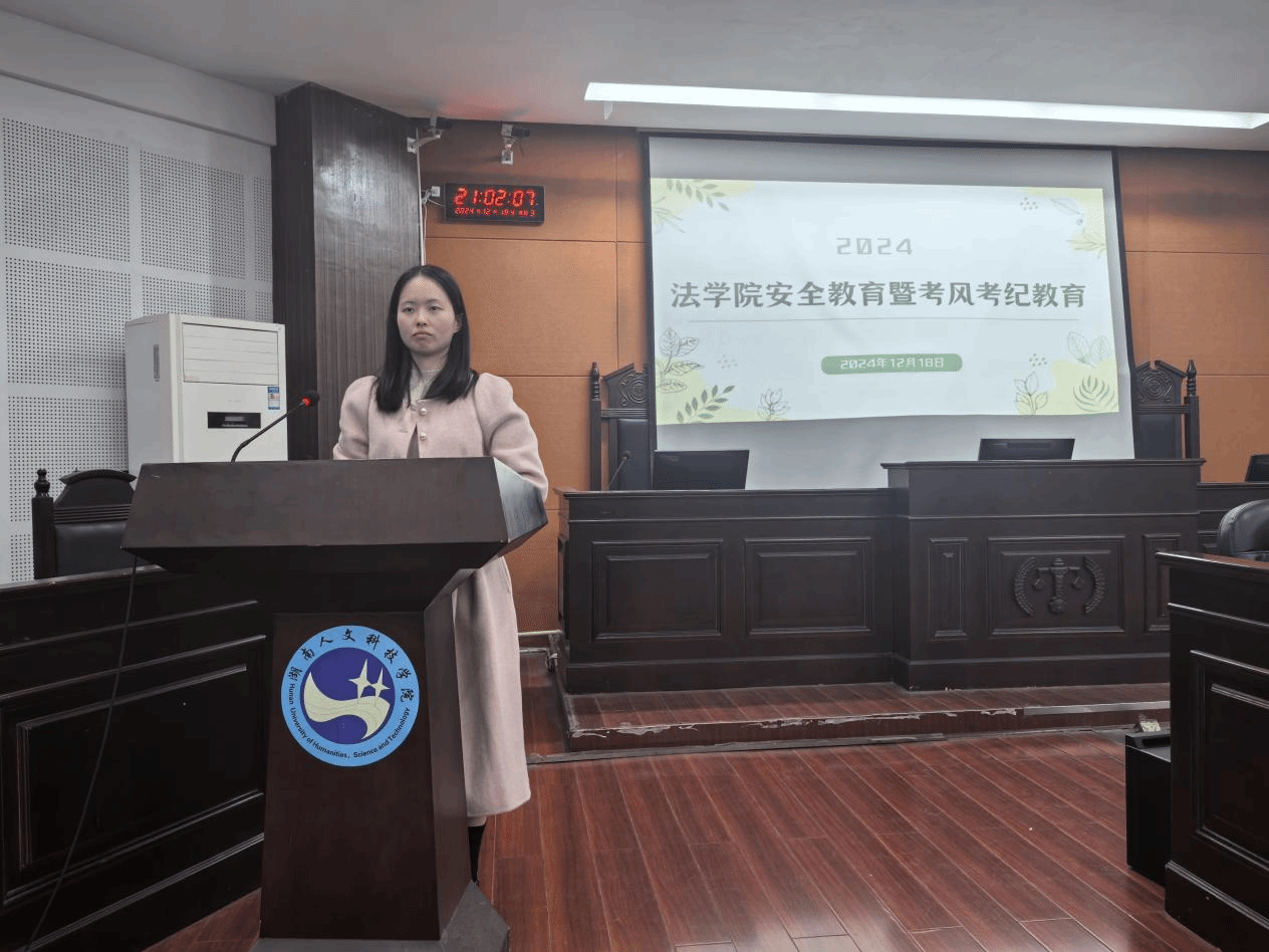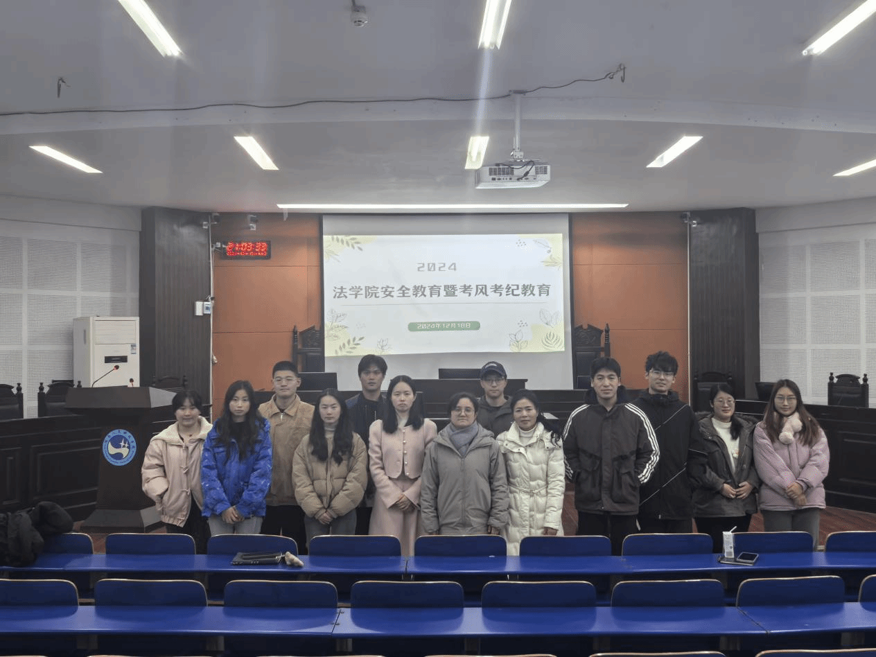 为增强学生的安全意识,确保考试的公平性,弘扬优良校风校纪,法学院于12月18日晚在致远楼202教室成功举办了“安全教育暨考风考纪教育”专题会议。党总支副书记邓南南、学工办主任陈玲、全体辅导员、团学会主席团成员以及各班级主要班委和寝室长参加了本次会议。