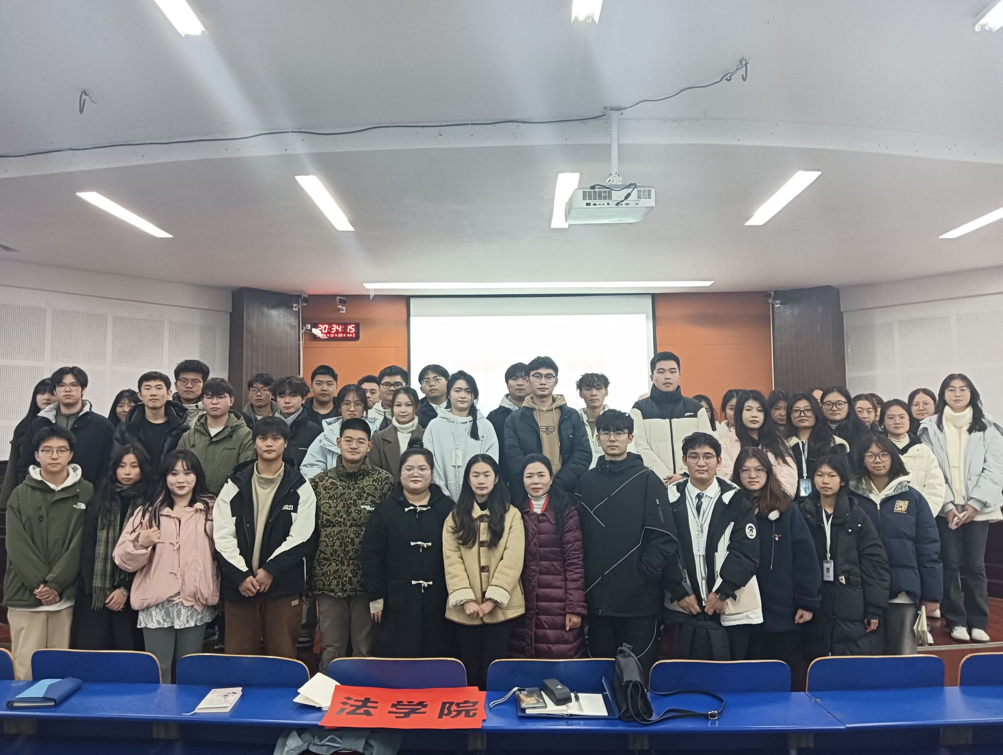 12月20日晚,法学院于致远楼202教室召开团学会学期总结大议。法学院学工办主任陈玲、辅导员羊哲思、彭蓉及全体团学会成员参与此次会议。