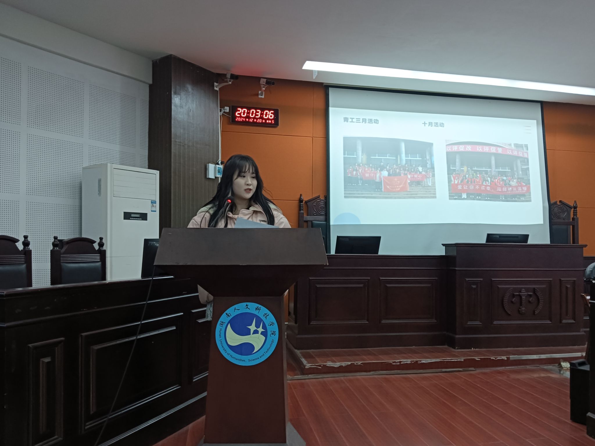 会议伊始,主席团成员及部长代表发言,对各自分管的部门进行工作总结,在展示工作成果的同时,深刻反思了部门近期工作中仍然存在的错误,并在此基础上制定了改正方案及工作计划,确保各部门工作对接能够按时、按质的完成。最后,陈玲进行总结,她对各部长代表及主席团成员的工作总结表示了肯定,并强调团学会成员应当坚持发扬“不怕苦、不怕累、不言弃”的三不精神,做到不忘初心,坚持不懈。