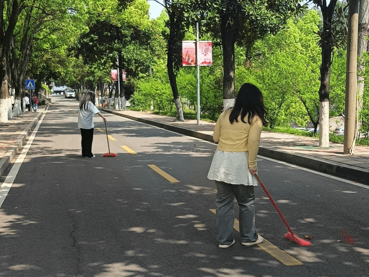 此次清扫活动,不仅使校园街道变得更加整洁,展现人文学子对环境的保护,更用实际行动彰显了奉献精神与责任担当,同时,也增强了团队的凝聚力。(供稿:陈玉婷;供图:陈玉婷;一审:闫俊;二审:邓南南;三审:肖兵明)