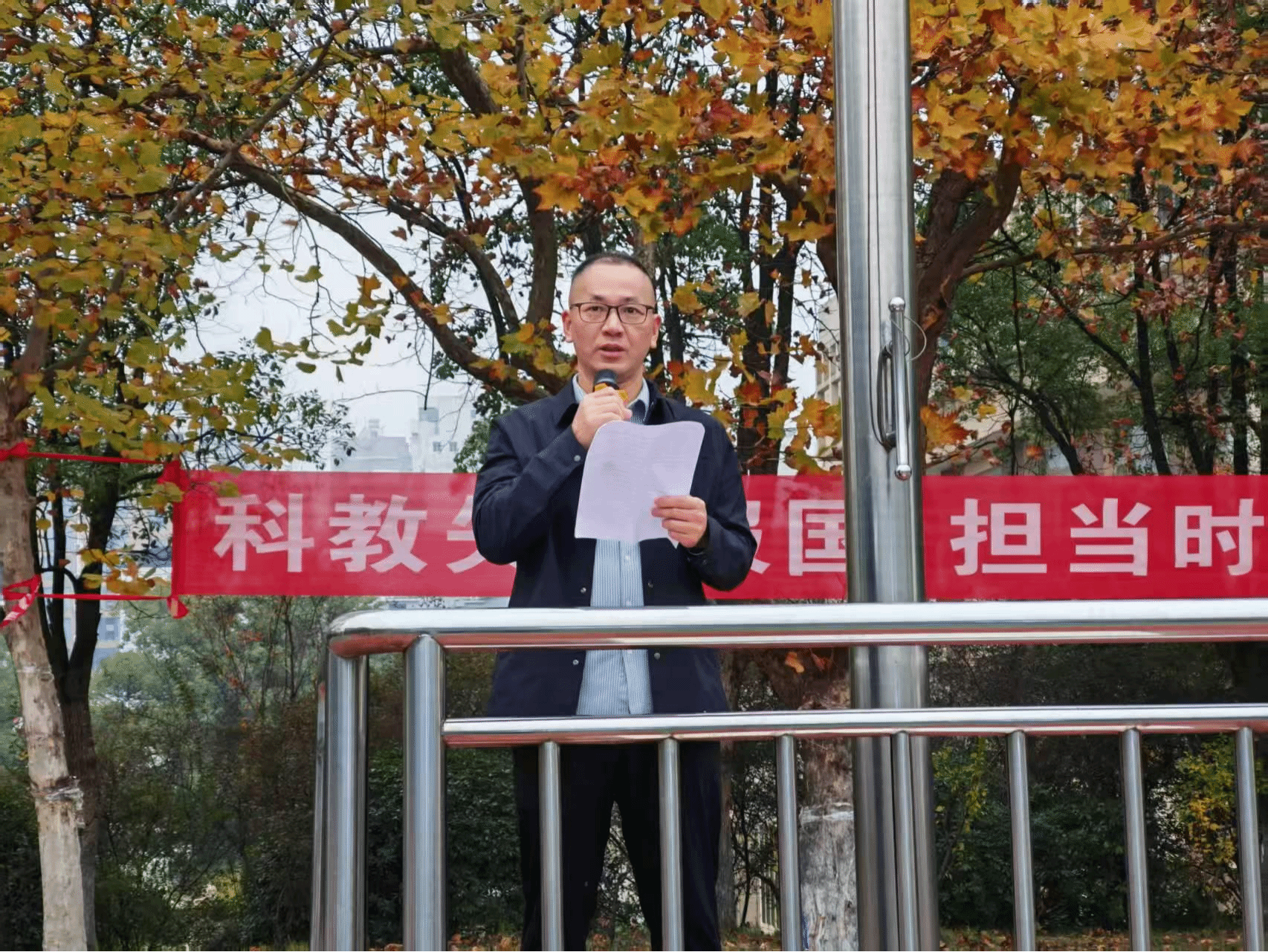 学生代表关欣瑞作国旗下演讲,倡议法学院学子弘扬法治精神,践行爱国情怀,勇做高素质法治人才。