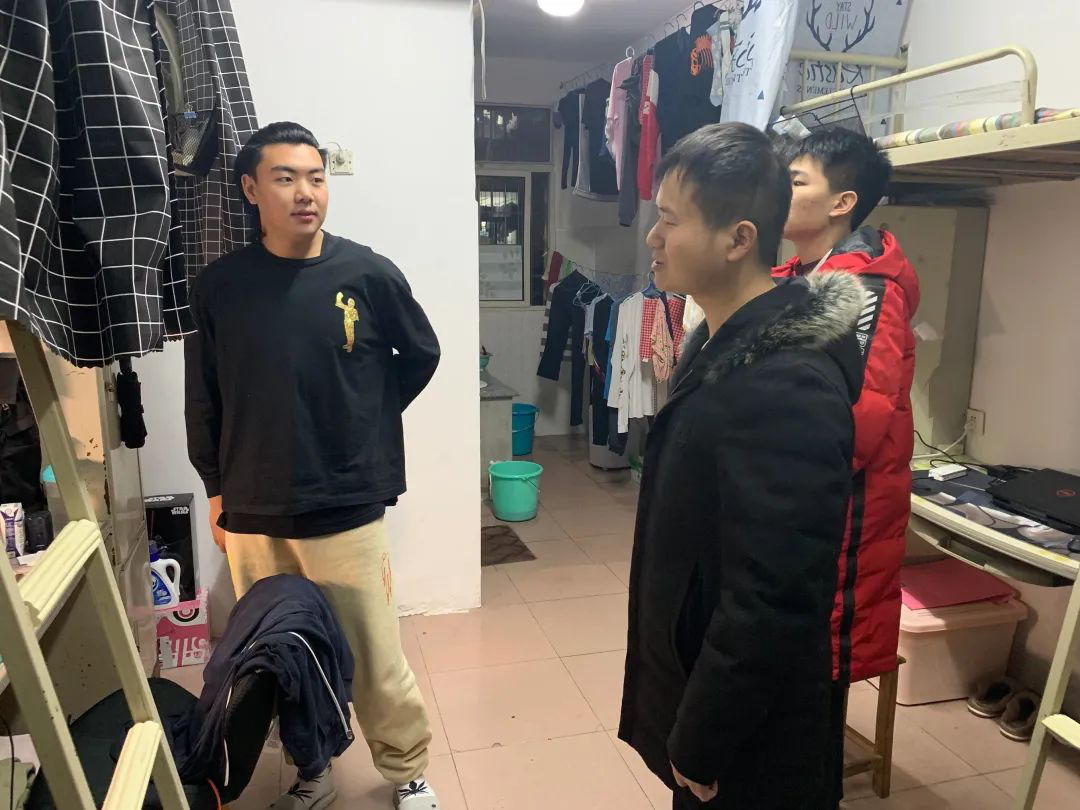 三位辅导员老师也在查寝过程中重点强调了寝室中严禁使用违规电器,冬季注意用电安全以及寝室卫生等问题。王演兵老师还特别提醒同学们要注意和睦相处。