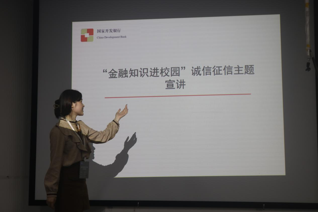 古人云:诚信于君为忠,诚信于父为孝,诚信于友为义,诚信于民为仁,诚信于交为智。诚信是立足社会的根本,在现代社会,诚信更是与社会生活密切相关。此次宣讲以国家开发银行关于“金融知识进校园”宣讲ppt为蓝本,从国家助学贷款、还款事宜、诚信和个人征信及注意事项四个方面展开,向同学们详细介绍了国家开发银行助学贷款的办理流程以及诚信征信在生活中的具体体现,让大家认识国家对于贫困学子的政策关怀以及诚信的重要性。与会同学积极学习相关内容,并提出自身疑惑,现场互动氛围融洽。宣讲在热烈的掌声中结束。