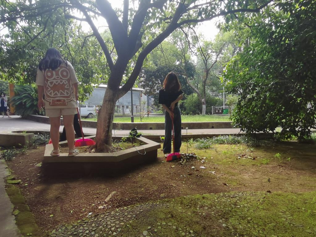 大家在团支书的带领下各司其职,用热情和活力积极认真地对待此次劳动。在大家的团结协作之下,若谷楼前的花坛焕然一新。