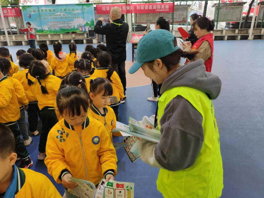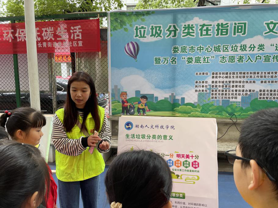 随后,“娄底红”志愿者代表宣读倡议书,向大家提出倡议:要学做垃圾分类的参与者、宣传者及监督者,从自我做起,从身边做起,发扬主人翁精神,发挥引领作用。我院社工志愿者团队于现场发放垃圾分类宣传册以及当场为居民讲解如何开展垃圾分类和垃圾分类的意义,他们身着社工马甲,热情地服务身边的居民,不仅进一步加强了居民们爱护环境创建文明城市的意识,而且增强了志愿者本身为建设美好校园创建文明校园环境的信念。这是我院参与娄底市文明城市建设活动的一次成功体验。