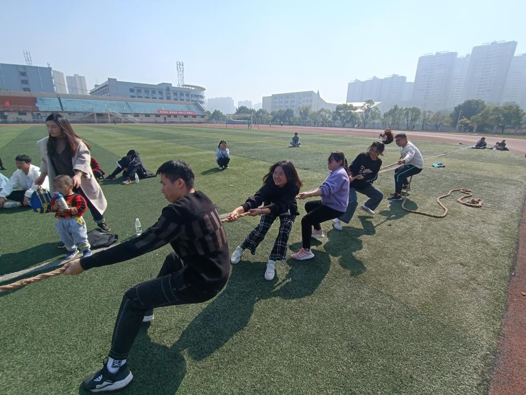 11月14日,法学院代表队于田径场参加学校开展的“师生向前冲”友谊活动,法学院部分老师及运动员参赛。本次活动由学生彭文奕主持。
