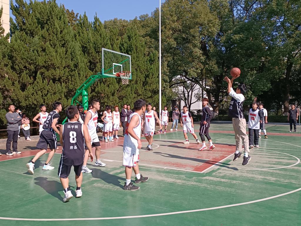 11月25日,法学院男子篮球队在新光球场迎来了最后一场比赛。本场比赛由法学院对战美设院。